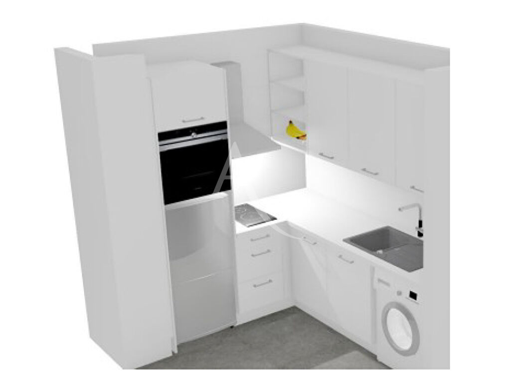 This apartment comprises an entrance hall, a living room with a fitted and partially equipped kitchenette (extractor hood, hob, oven), a bedroom with storage, a shower room with WC, and a lovely west-facing loggia.