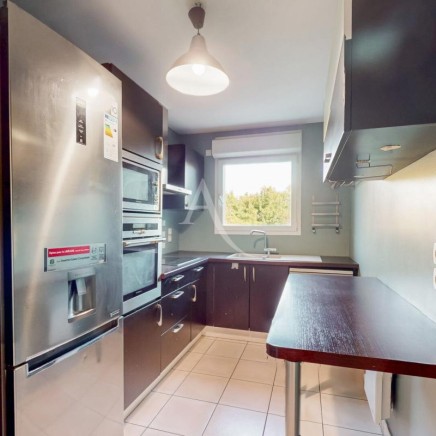 The apartment, located on the 2nd floor, features a large entrance hall with storage, a 30 m² living room opening onto a beautiful north/west-facing balcony, a fitted and fully equipped kitchen (exhaust hood, stovetop, oven, dishwasher, microwave, and refrigerator), and a master bedroom with a shower room/toilet and storage.