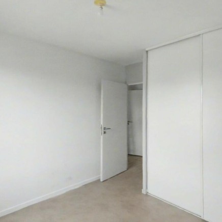 The sleeping area comprises two bedrooms, one with a built-in closet.