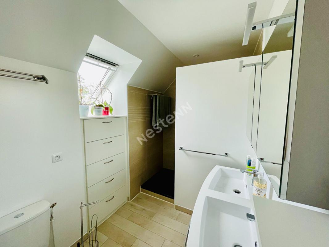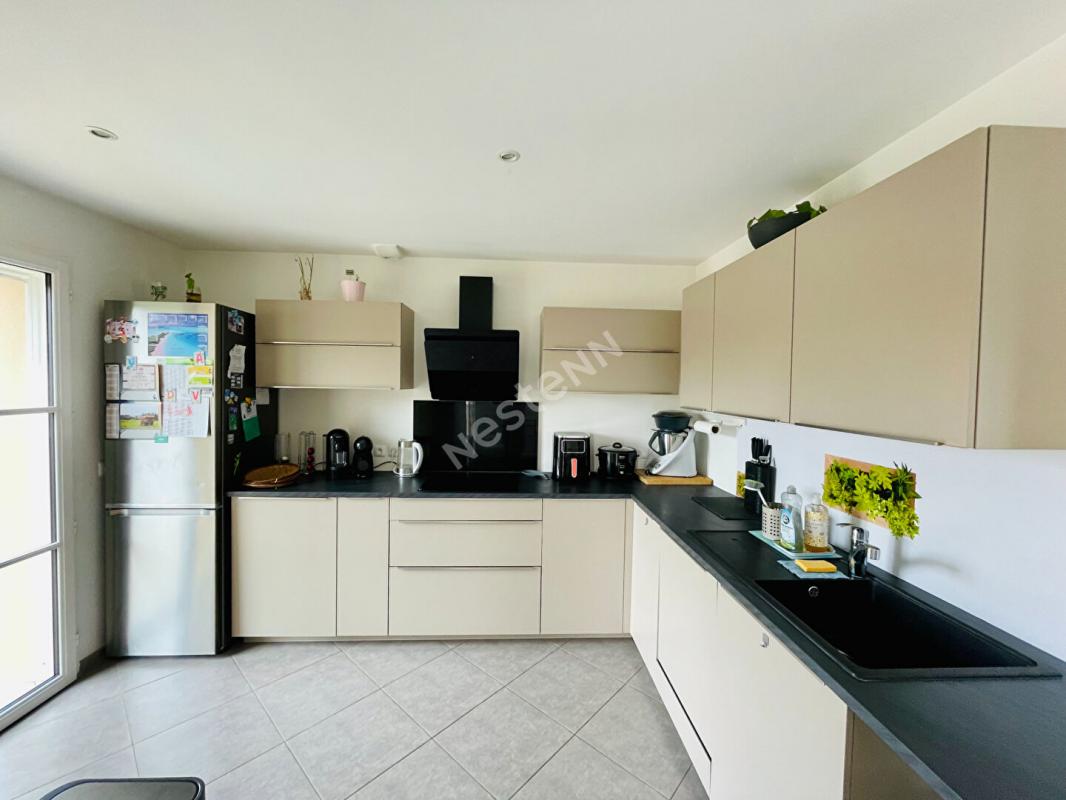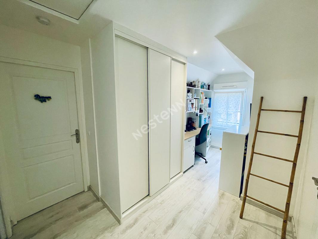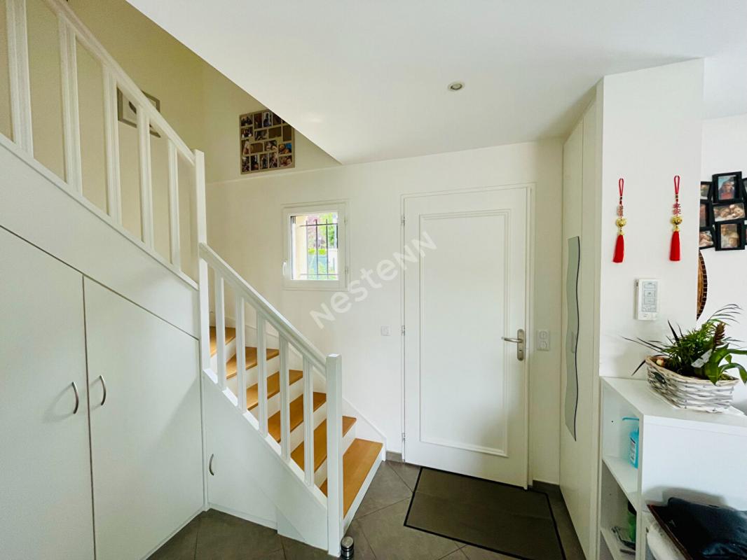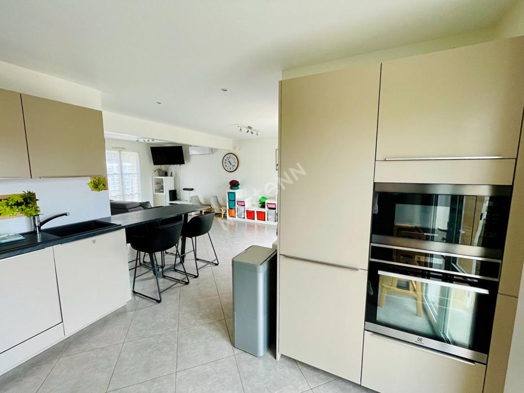 On the ground floor, it offers an entrance leading to a living room bathed in light thanks to its double exposure and opening onto a modern, fully fitted and equipped eat-in kitchen. A garage and a laundry room complete this level.