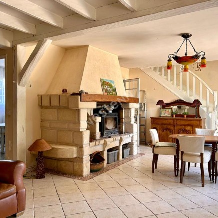 Built on a plot of approximately 870m², it features a garage and a full basement of over 95m², offering plenty of storage space or additional amenities.