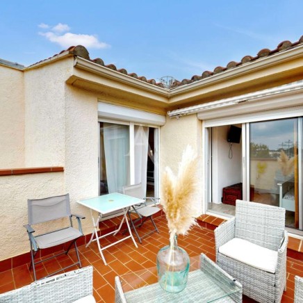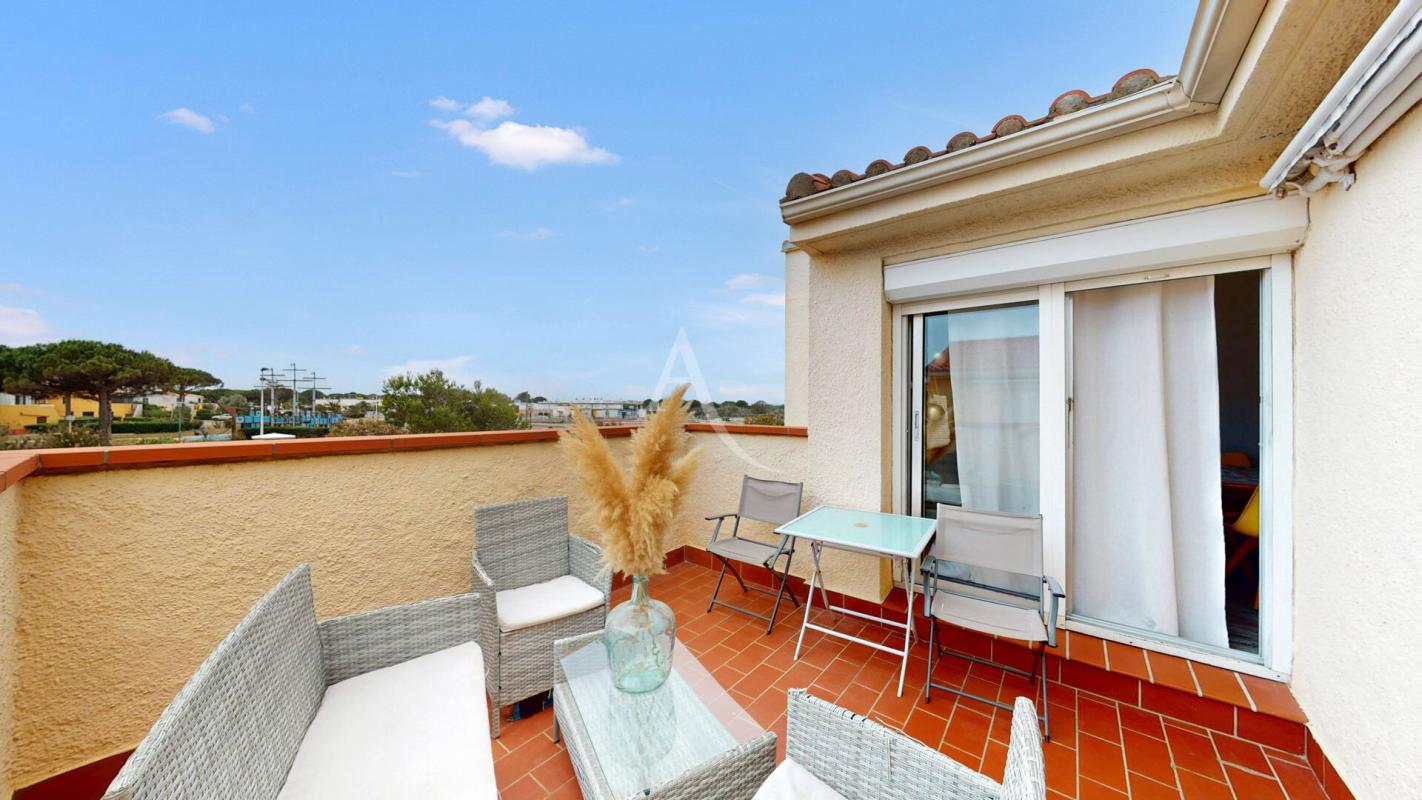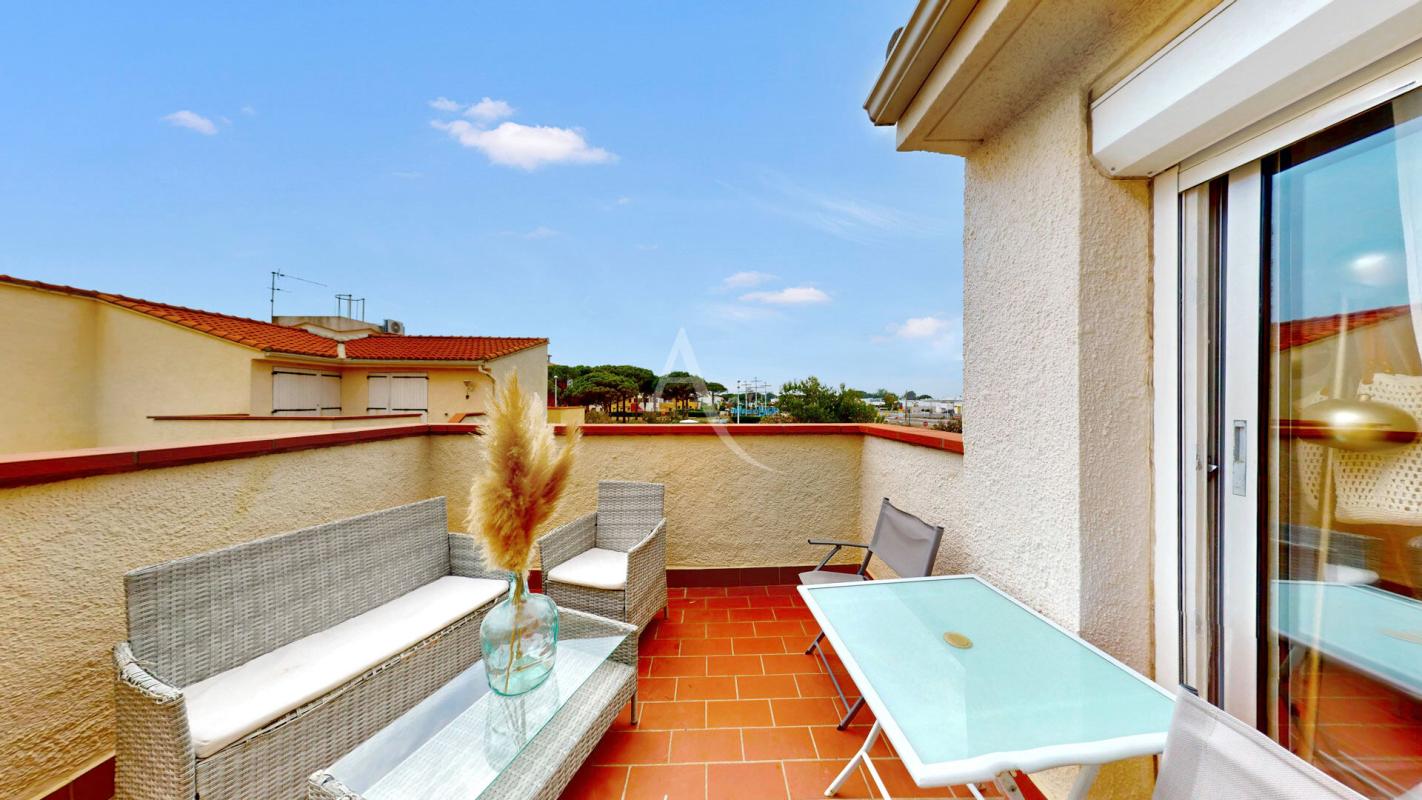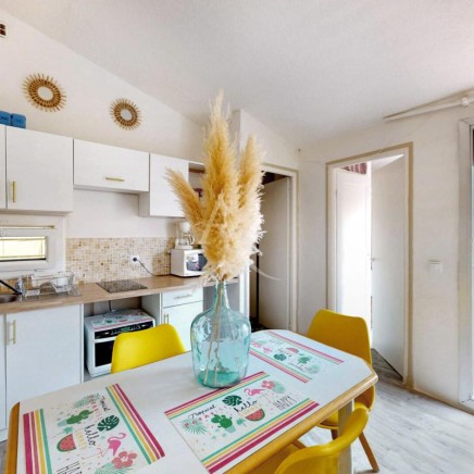 Located in Le Barcarès, just 500 meters from Lydia Beach and the famous Christmas Village, this fully renovated 28m² one-bedroom apartment will charm you with its modern and functional design. It also boasts a superb 12m² terrace with unobstructed views of the town and the Canigou mountain in the background.