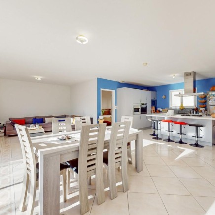 Located in a quiet neighborhood, this beautiful single-story villa will charm you with its comfort and quality features. Located on a 524 m² plot with a swimming pool, it consists of a spacious 50 m² living room, a modern, high-end kitchen, and four bright bedrooms. This house is ready to welcome you without any work.