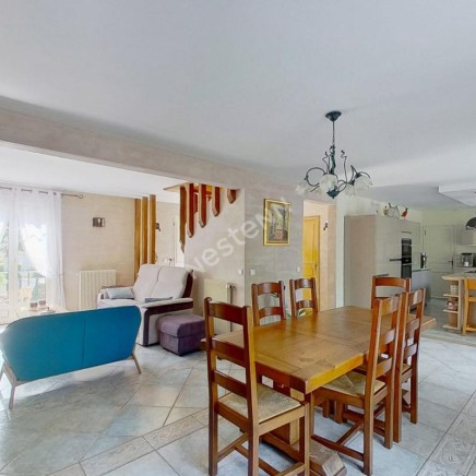 The ground floor also features a reception room of over 50 m², combining a spacious dining room, a bright living room, and a recently renovated kitchen, ideal for entertaining and sharing convivial moments.