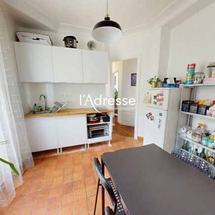 Located on the 1st floor of a building dating from approximately the early 20th century, without an elevator, this dual-aspect apartment overlooks a pedestrian street and a courtyard. You will be captivated by its tranquility, brightness, high ceilings (approximately 2.70 m), large windows, original hardwood floors, and one of the original fireplaces.