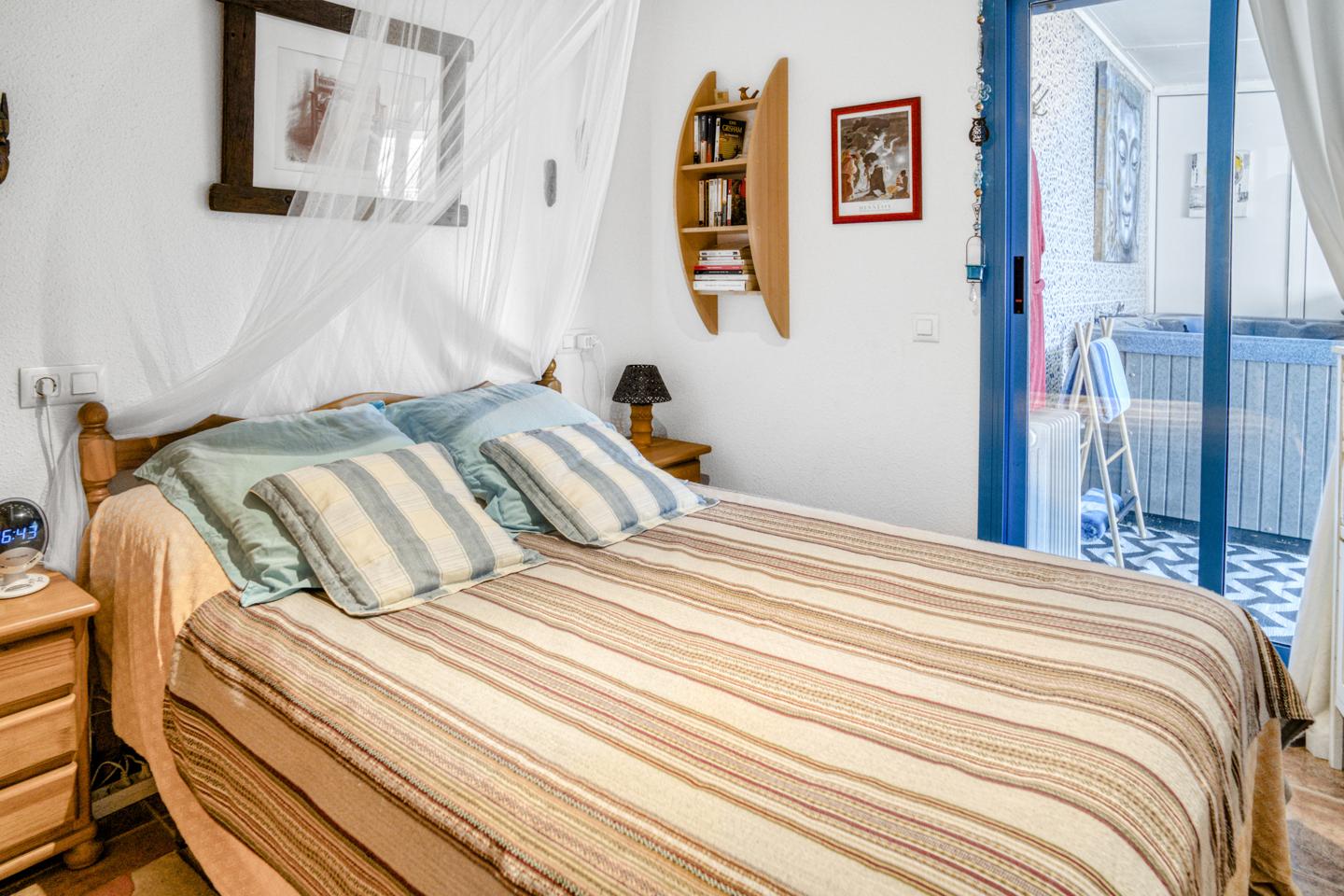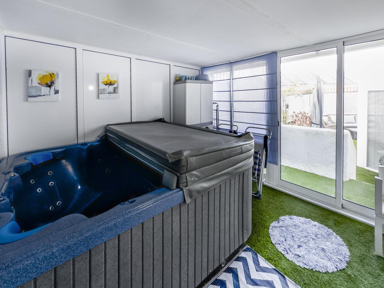On the main floor, upon entering, we find a living-dining room with access to an interior terrace with a barbecue, perfect for enjoying meals al fresco. The fully furnished and equipped kitchen offers functionality and style. This floor also features a guest toilet, a full bathroom, an outdoor terrace, and a double bedroom with direct access to the same terrace. It also features an indoor Jacuzzi area, ideal for relaxing moments.