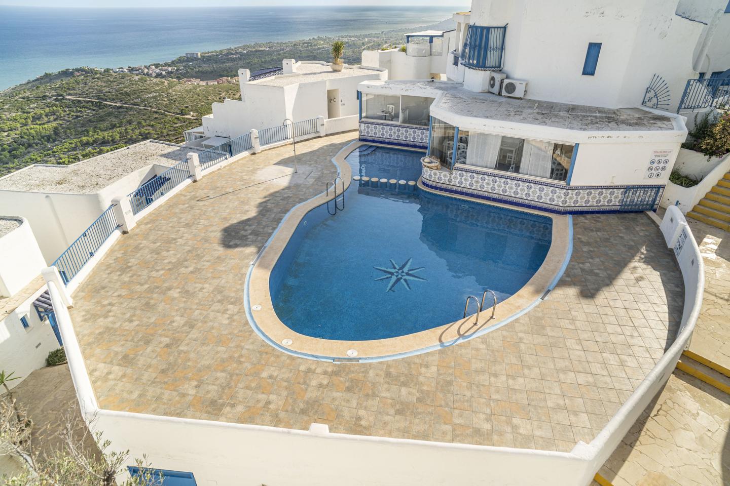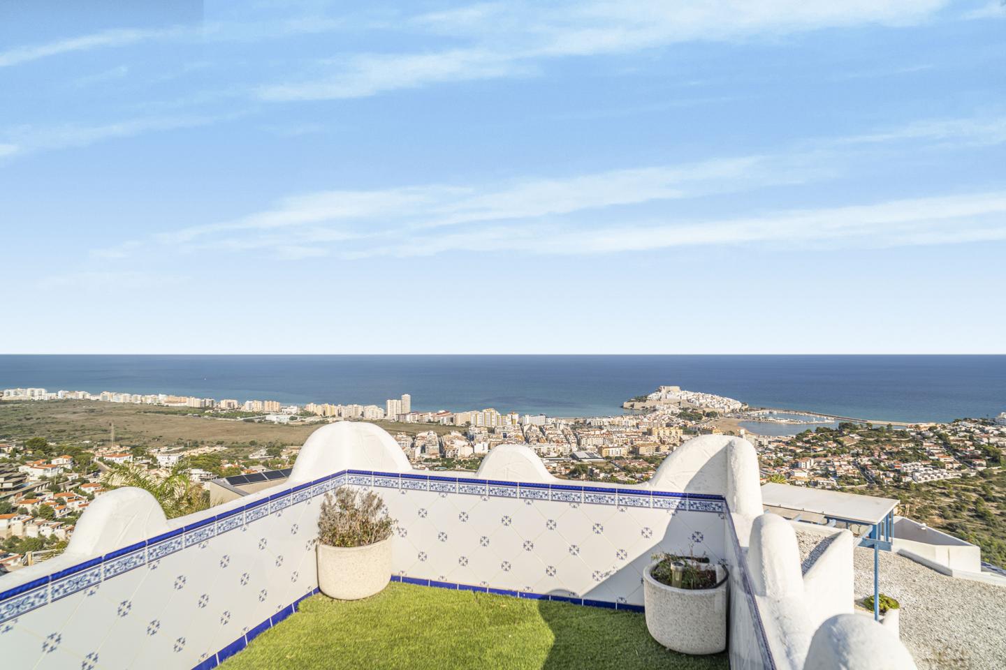 Exclusive three-story home in one of the best residential areas of Peñíscola, with a communal pool, surrounded by nature and located in a very quiet area, just minutes from the town center. Its fantastic orientation guarantees plenty of light throughout the day and privileged views of the Mediterranean Sea and Papa Luna Castle.