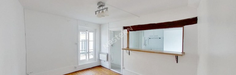Located on the third and top floor (without an elevator), this 37.90m² property offers: an entrance hall, a bathroom with a water closet, an open-plan fitted kitchen, a living room, and two bedrooms.