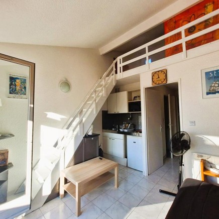 In a lovely residence with a caretaker, swimming pool, and a park of century-old pine trees, your L'Adresse agency in Sète invites you to discover exclusively this one-bedroom mezzanine apartment of approximately 28 m² (including 19.87 m² Carrez Law). Located on a high floor with an elevator, you will be charmed by its quiet, private terrace offering a view of the sea and Mont Saint Clair.