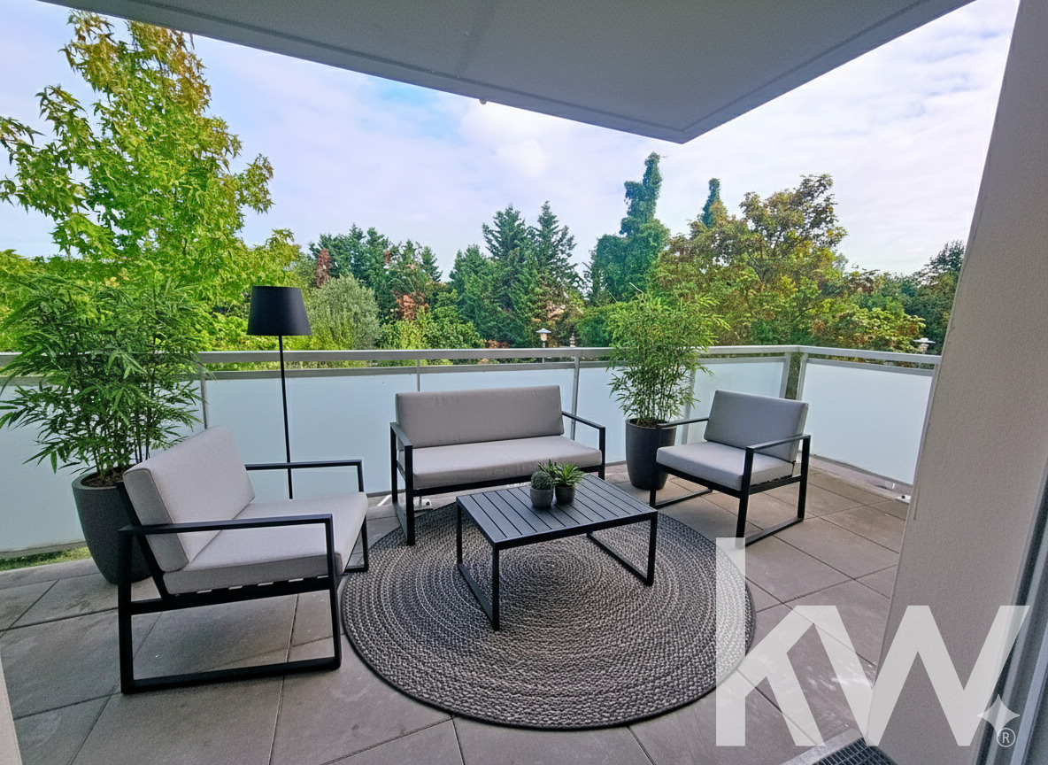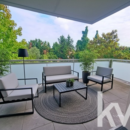- East-facing terrace at the rear of the building, in a peaceful setting