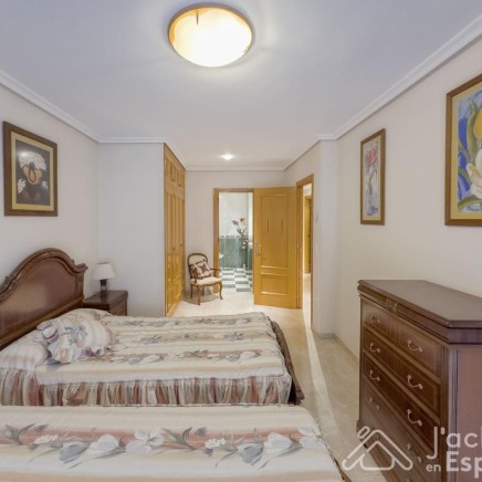 It features 4 bedrooms (three doubles, one of which is en suite, and one single), and 2 full bathrooms. The spacious and bright living-dining room, thanks to its south-facing orientation, offers direct access to a pleasant private terrace, perfect for enjoying the Mediterranean climate.
