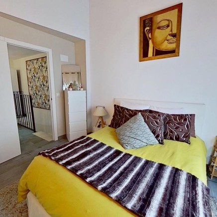 Al entrar en la casa, se descubre un precioso salón que se integra armoniosamente con una moderna cocina abierta completamente equipada. La distribución abierta crea un espacio ideal para la convivencia familiar y social. Desde el salón, se accede a un encantador patio de luz, que ilumina naturalmente el interior de la vivienda y da acceso a una de las habitaciones en la planta baja.