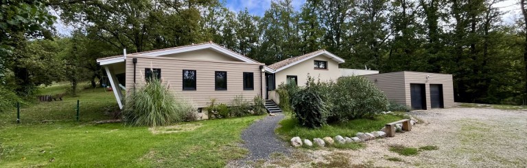 Tout est pensé pour les véhicules: un double garage de 50 m² avec belle hauteur sous plafond et portes motorisées est attenant à la maison. Enfin le parking extérieur permet de stationner plusieurs voitures ou même un camping-car.