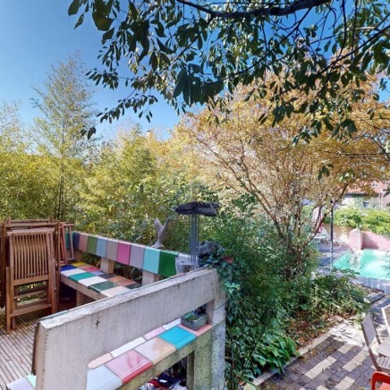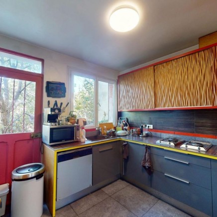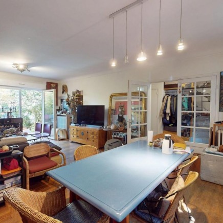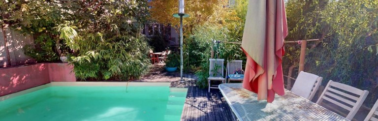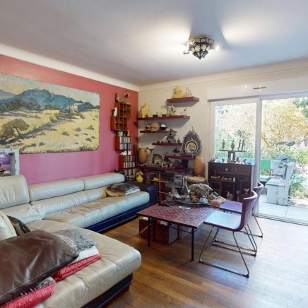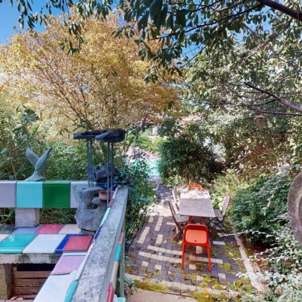 S'ajoute un logement de 27 m² avec son accès indépendant sur 2 niveaux avec un salon et kitchenette donnant sur le jardin par une porte fenêtre, une chambre avec douche et un WC indépendant.