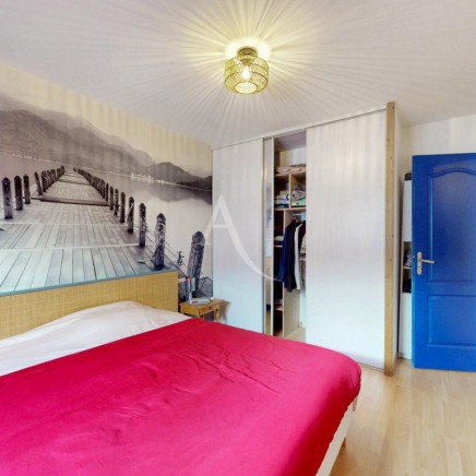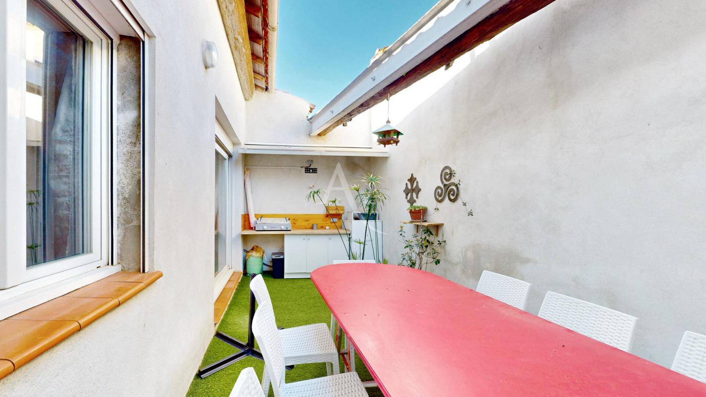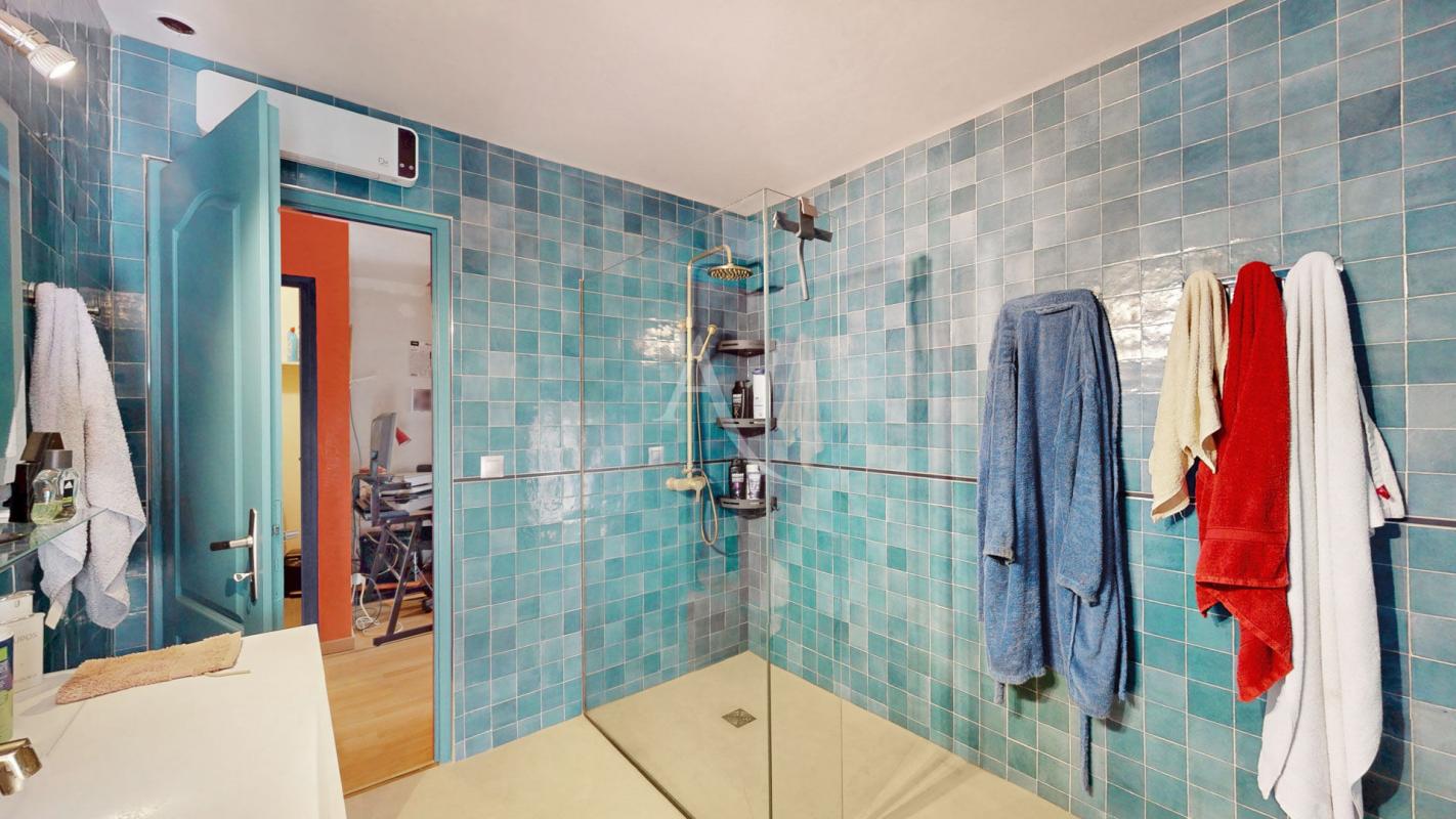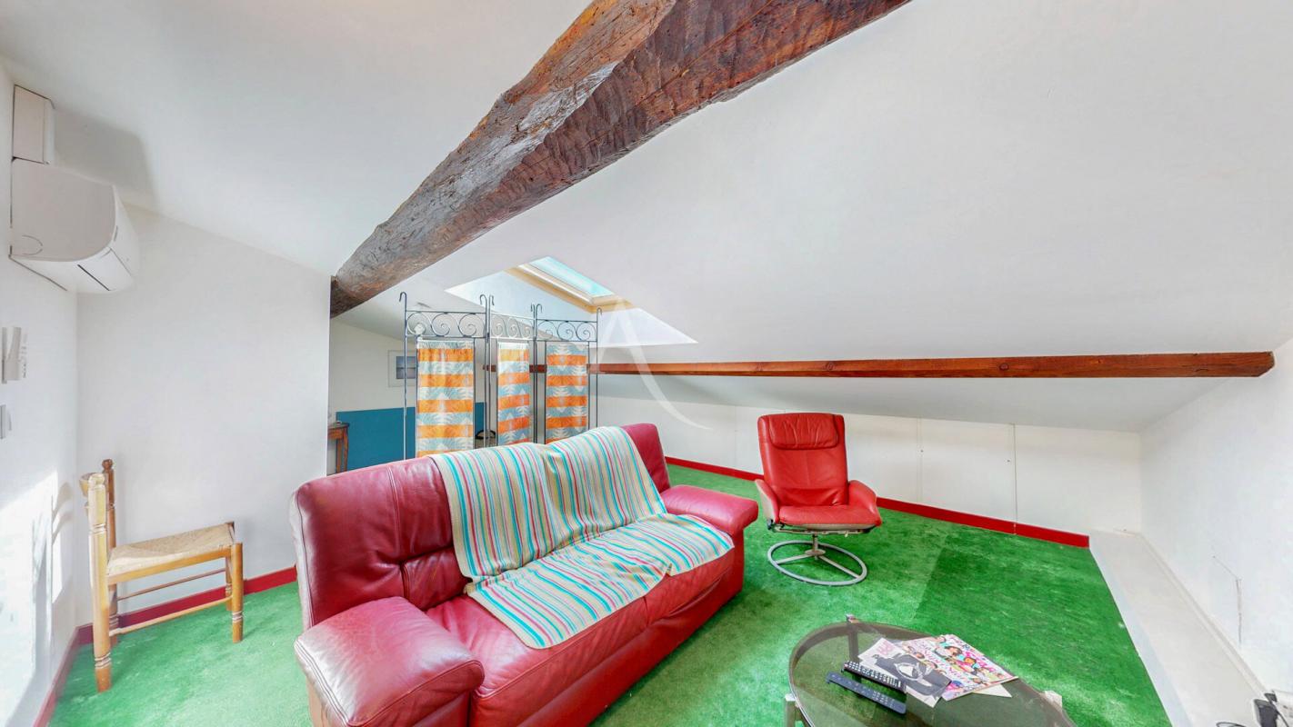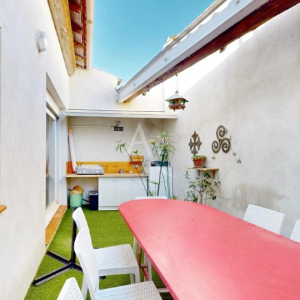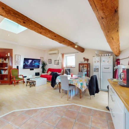 A l'étage, le salon séjour mesurant 40m², un couloir qui conduit à un cellier, 2 chambres (12.94m² et 13.86m²), un WC, une salle d'eau récemment rénovée, un coin petit salon avec l'accès à la terrasse sans vis à vis où il y sera agréable d'y accueillir vos convives.