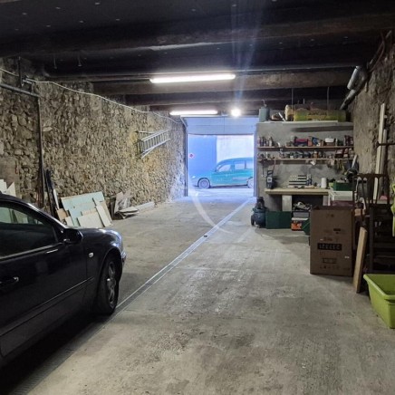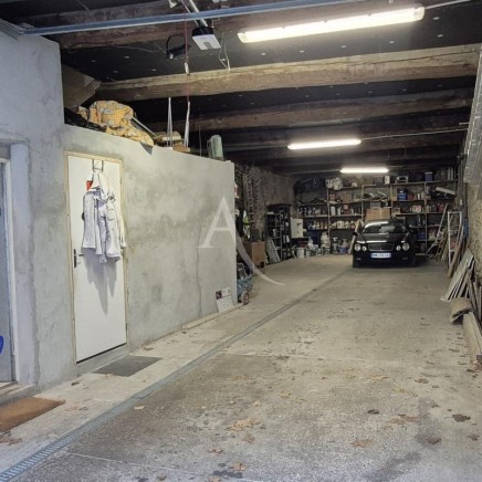 En RDC, le garage de 105m² bénéficiant d'une hauteur sous plafond de 3m70 avec un espace buanderie et WC. Le garage peut accueillir jusqu'à 4 véhicules selon le type.