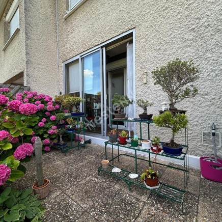 Au rez-de-chaussée, une entrée, un dégagement avec placard, une cuisine indépendante équipée, un séjour avec cheminée donnant accès à une loggia ouverte sur une terrasse sans vis-à-vis parfait pour des moments en famille. Un water-closet indépendant avec lave-mains complète ce niveau.