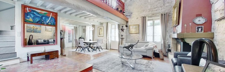 A l'intérieur, laissez-vous séduire par son séjour double cathédrale de 44 m2, baigné de lumière et sublimé par son joli mur en pierre de plus de 7mètres de hauteur ainsi que sa magnifique cheminée.