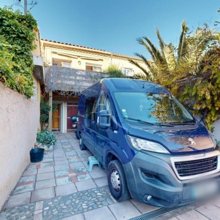 A l'avant de la maison, il est possible de stationner deux grands véhicules, type camping-car et voiture, un véritable atout en centre-ville.