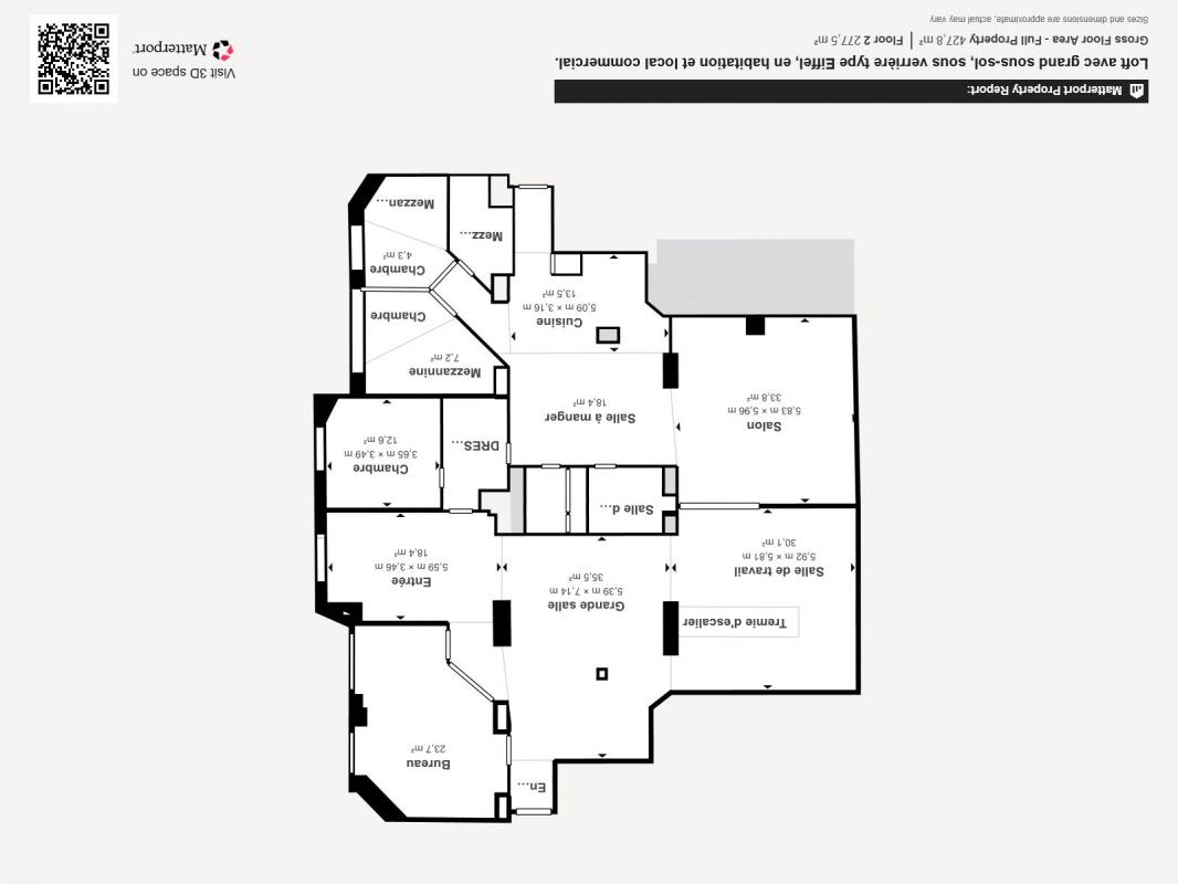 Vous serez séduit par le séjour de 34 m², baigné de lumière grâce à sa superbe verrière Eiffel, sous 5,20 m. de haut, séparé par une grande cloison coulissante, de la partie professionnelle du bien, un open space de 35 m², s'ouvrant sur plusieurs bureaux, en sous-sol ou vers l'entrée, et offrant une vue apaisante sur la jolie cour pavée et fleurie,