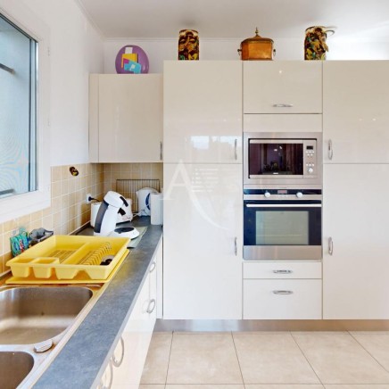 Dès l'entrée, vous serez séduits par sa pièce de vie de 60 m², baignée de soleil grâce à ses grandes baies vitrées plein sud. La cuisine ouverte invite à partager de beaux moments en famille ou entre amis, avec en toile de fond un panorama superbe.