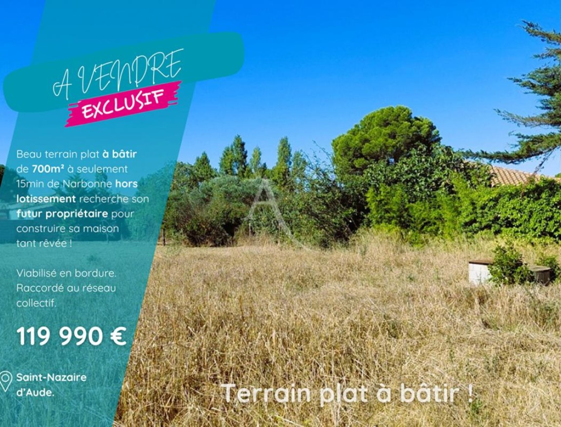 En exclusivité dans votre Agence L'Adresse. A seulement 15 minutes de Narbonne, dans un village dynamique avec toutes commodités, découvrez ce superbe terrain de 700 m².