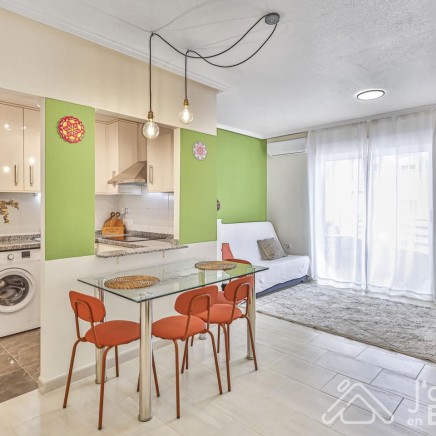 Completamente renovado, consta de un dormitorio con acceso directo a un patio, un cuarto de baño moderno y una cocina equipada abierta al salón-comedor con acceso a un balcón.