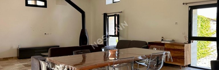 Située dans un environnement calme et recherché, elle se compose au rez-de-chaussée d'une entrée cathédrale, d'un séjour double baigné de lumière équipé d'un poêle à granulés, d'une cuisine aménagée et équipée, d'une chambre et d'une salle d'eau de plain-pied.