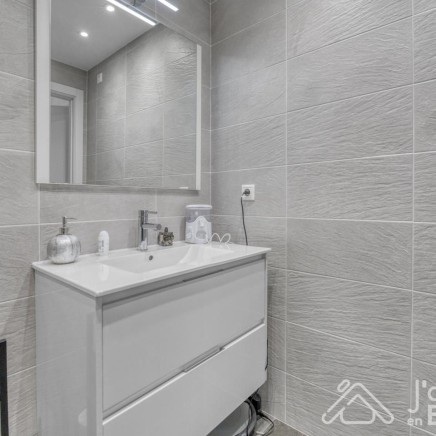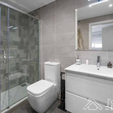 Avec des finitions haut de gamme, le rez-de-chaussée comprend un vaste séjour-salle à manger avec accès direct à une grande terrasse, deux salles de bains complètes, dont une attenante, et deux chambres doubles, toutes orientées vers l'extérieur et bénéficiant d'une vue imprenable. La cuisine séparée est entièrement équipée et conçue avec un souci du détail exceptionnel, faisant de chaque espace un véritable plaisir pour les sens.