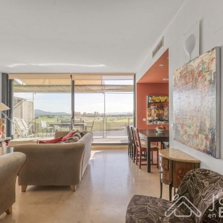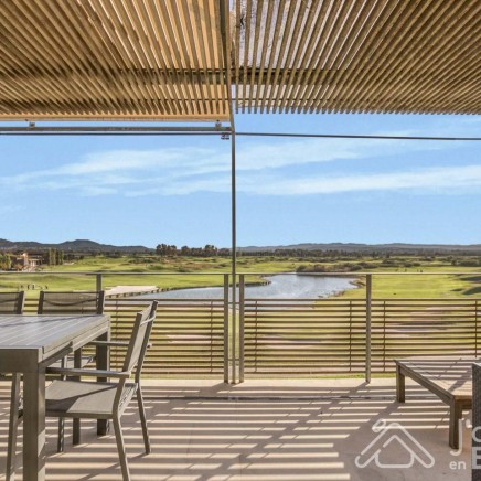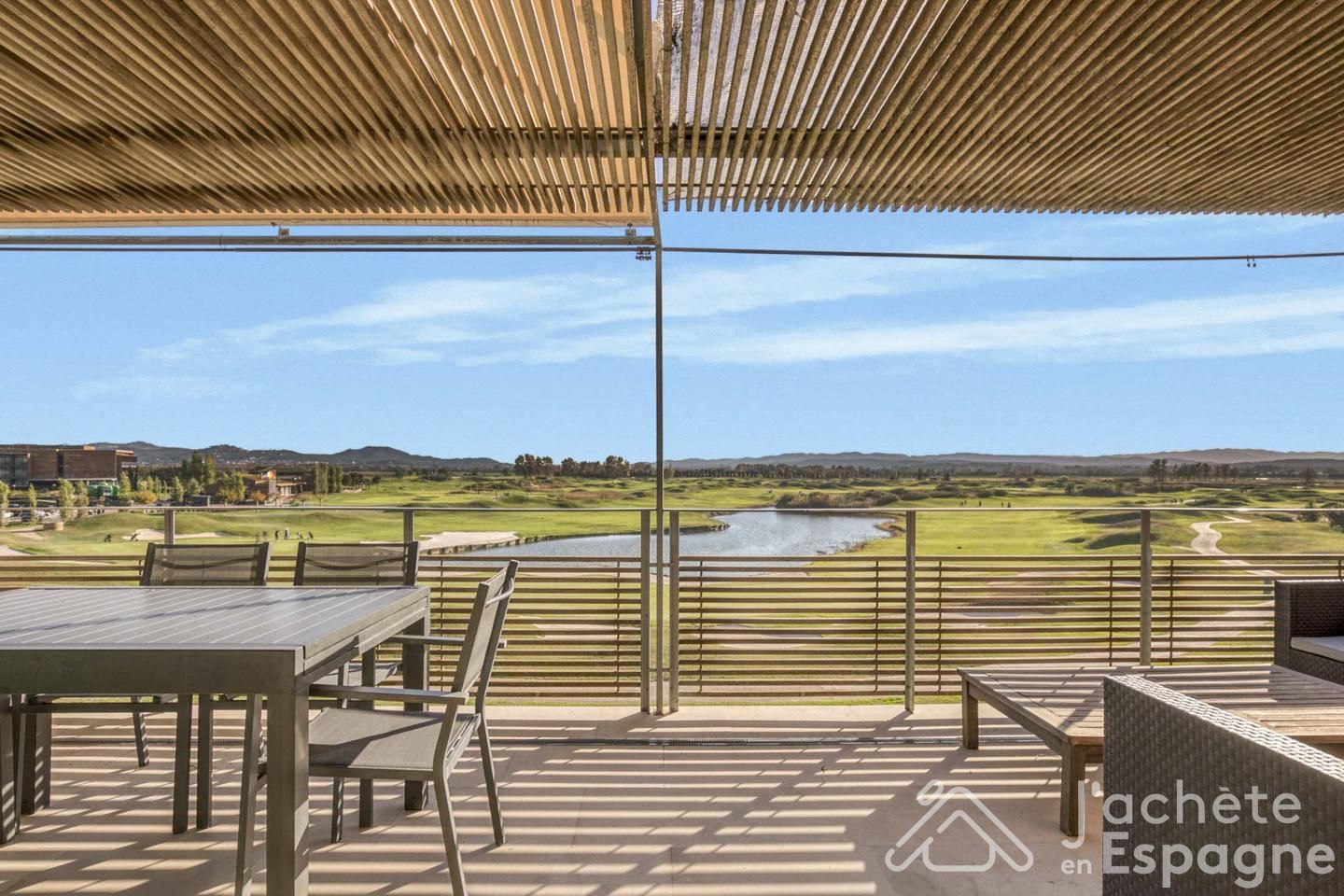 * Un vaste séjour-salle à manger s'ouvrant sur une grande terrasse offrant une vue à couper le souffle sur le golf et les paysages naturels environnants