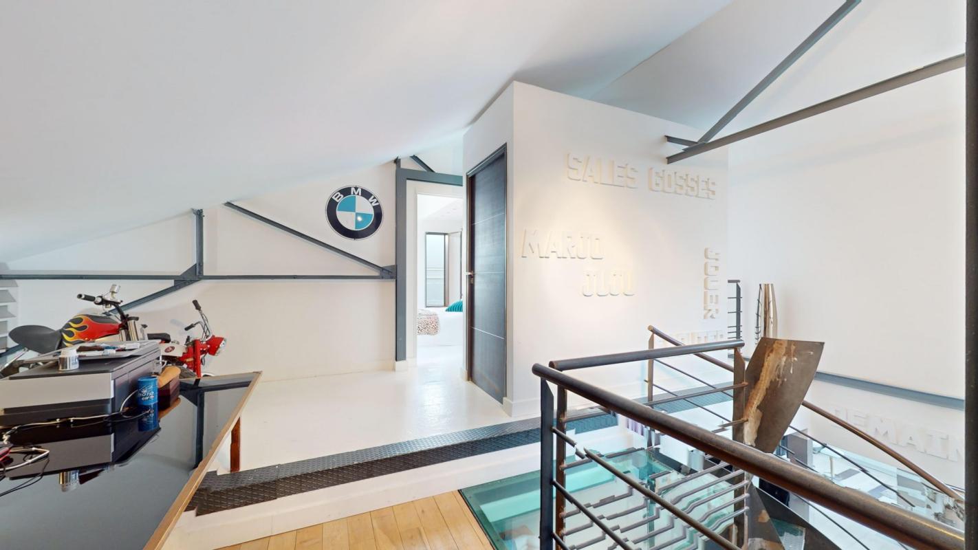 Conçue avec de beaux matériaux (béton, bois, acier, poële en fonte, structure type Eiffel, verrière), cette villa est résolument moderne et très fonctionnelle, avec son entrée sécurisée pour véhicules 2 roues.