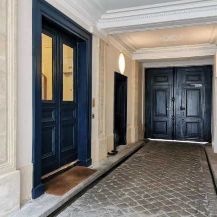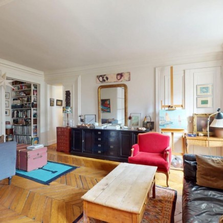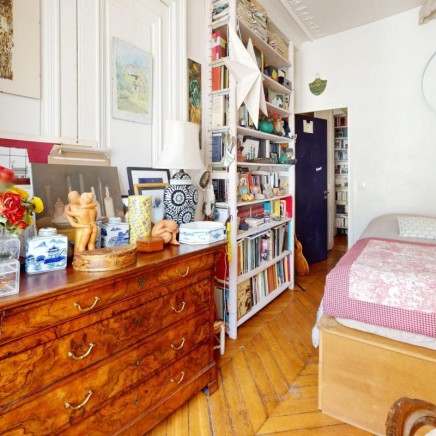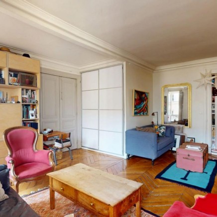 Au sol parquet en chêne d'origine, moulures au plafond, belle hauteur sous plafond, et situé au 3ème étage d'un immeuble ancien de 1800, ravalé et entretenu.