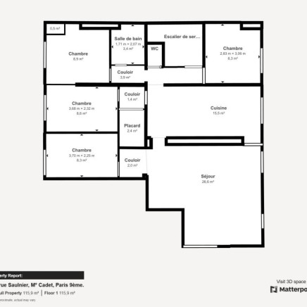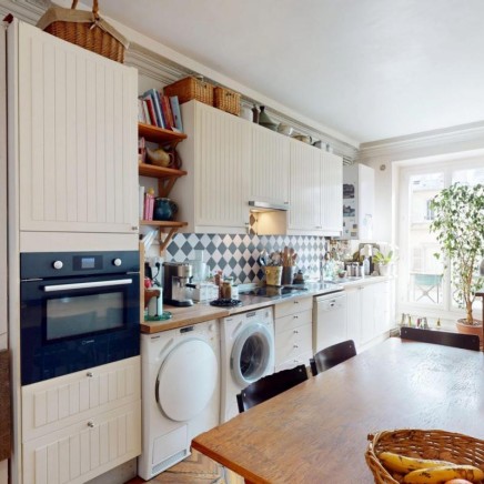 A 2 mn. du M° Cadet (ligne 7), dans une rue très calme, appartement familial de charme, avec 4 vrais chambres indépendantes, un grand salon de 27 m², et une grande et agréable cuisine dinatoire de 15 m², lumineuse avec sa grande fenêtre sur cour.