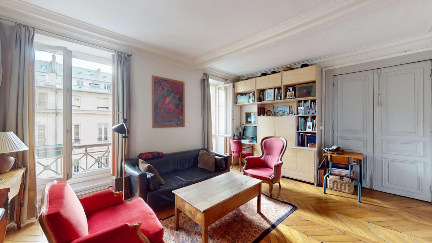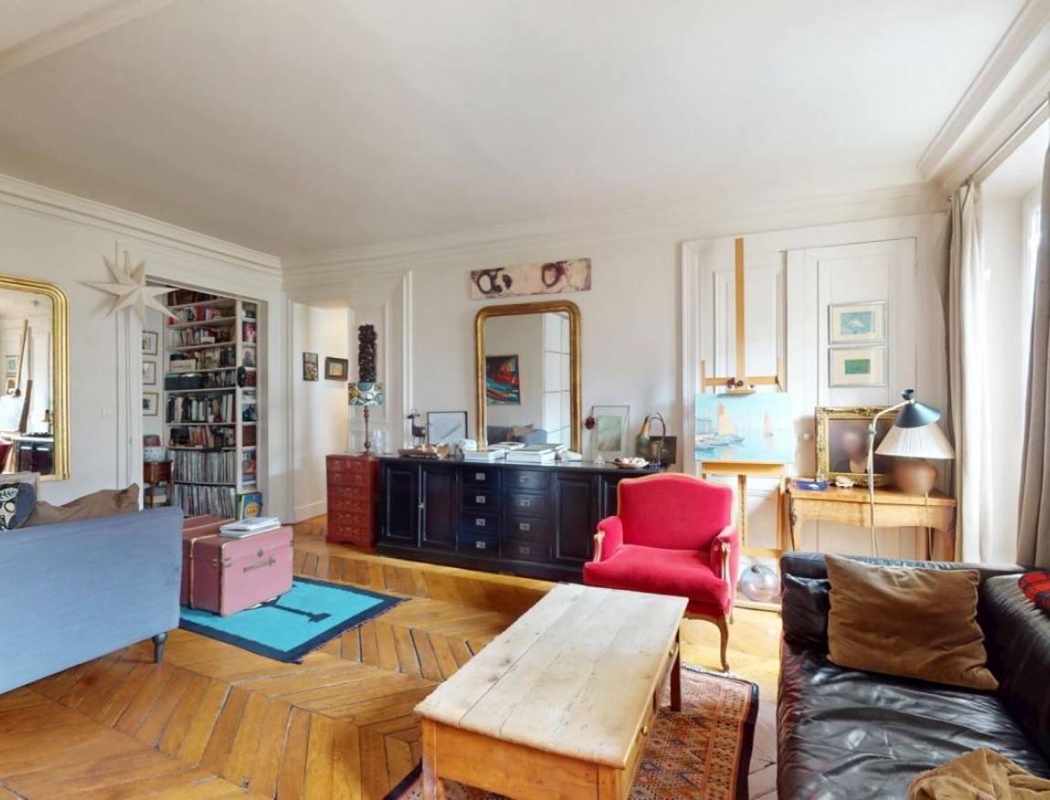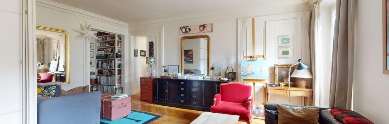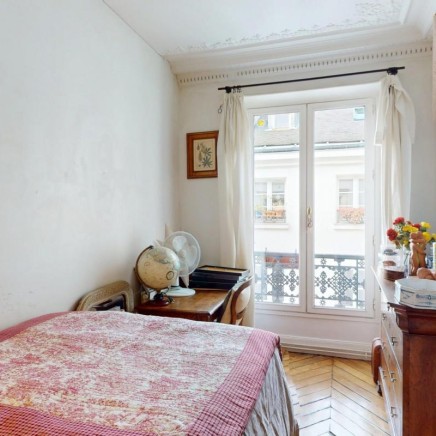 Au sol parquet en chêne d'origine, moulures au plafond, belle hauteur sous plafond, et situé au 3ème étage d'un immeuble ancien de 1800, ravalé et entretenu.