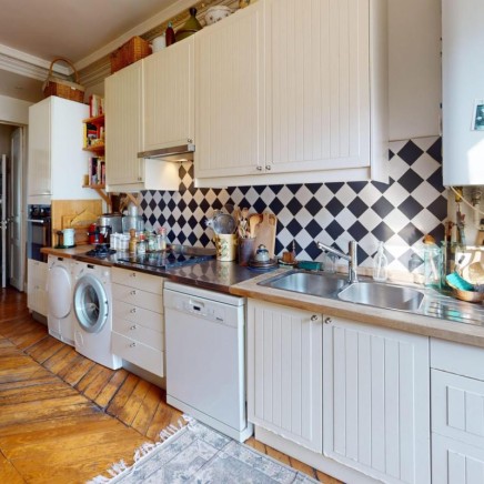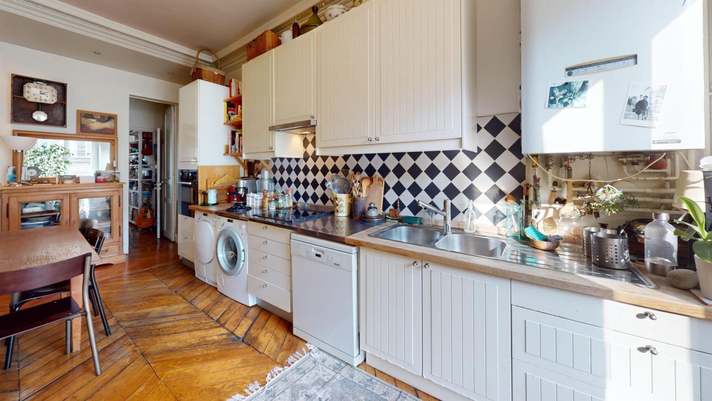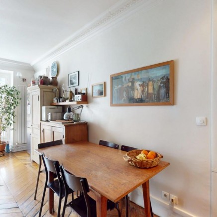 A 2 mn. du M° Cadet (ligne 7), dans une rue très calme, appartement familial de charme, avec 4 vrais chambres indépendantes, un grand salon de 27 m², et une grande et agréable cuisine dinatoire de 15 m², lumineuse avec sa grande fenêtre sur cour.