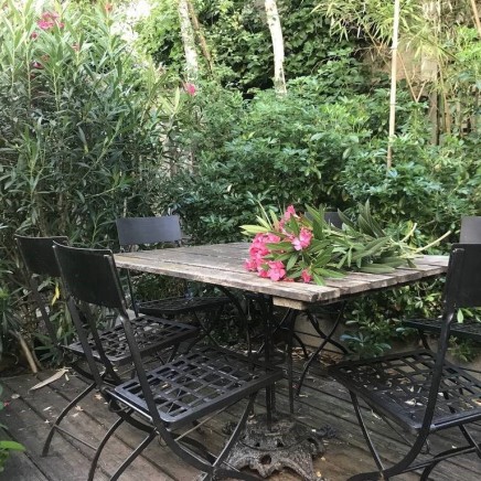- Cheminée fonctionnelle avec un insert + réserve de bois dans le jardin.