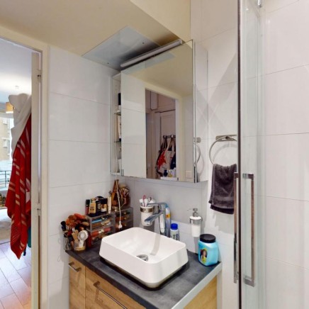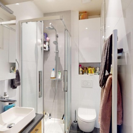 La chambre, spacieuse et confortable, vous offre un havre de paix après une journée bien remplie. La salle d'eau et les WC, également en bon état, complètent parfaitement cet espace de vie.