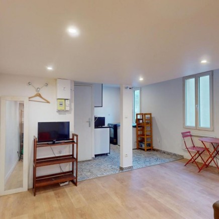 Bel espace de vie de 25 m2 avec séjour et cuisine ouverte.