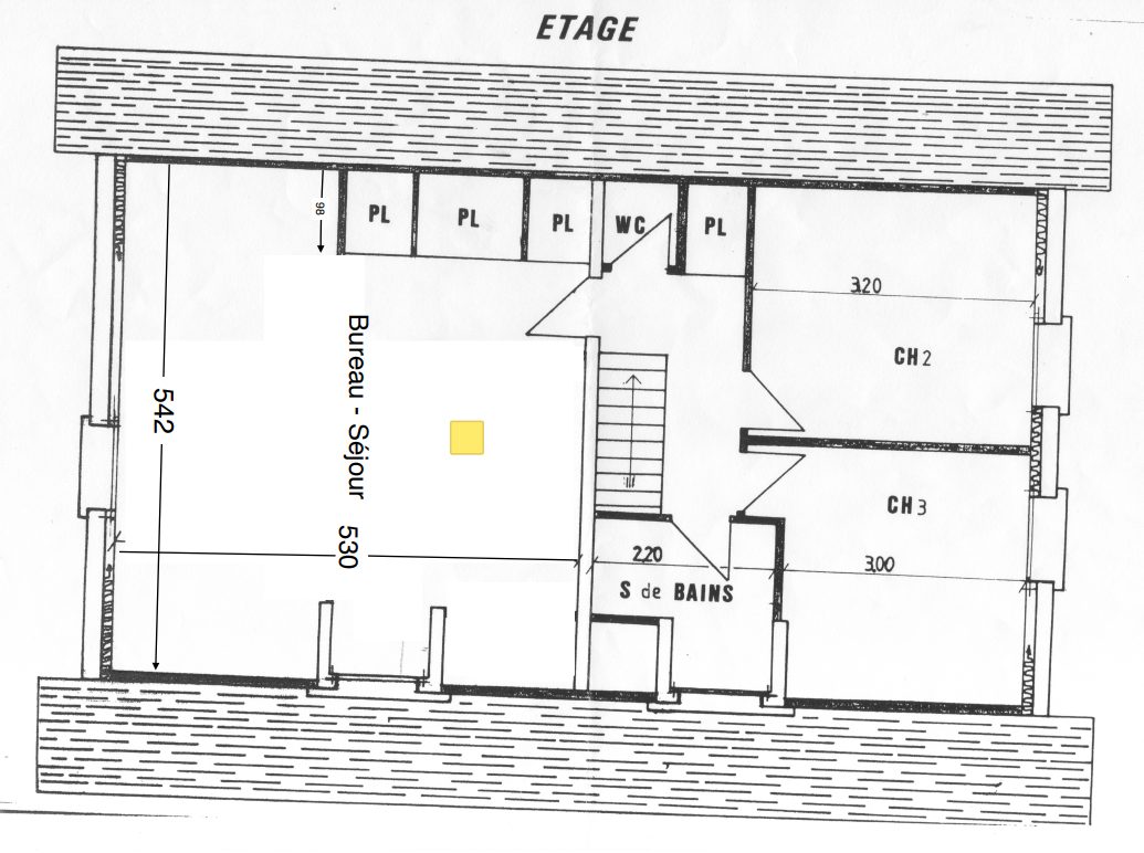 - un 1er étage de 57 m² Hab. (plus au sol), en-dessous de combles avec isolation intérieur (10 cm), avec 3 chambres confortables et lumineuses, placards, rangements, 1 salle d'eau et un WC séparé,