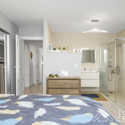 Lumineuse et parfaitement agencée, la villa comprend 3 chambres spacieuses et 2 salles de bains, idéales pour les familles ou pour recevoir des invités en toute tranquillité.