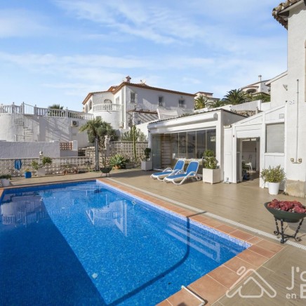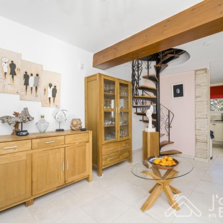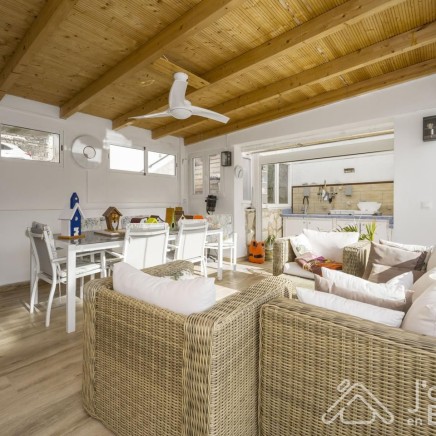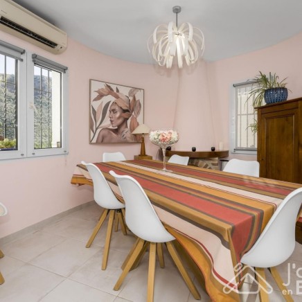 À l'extérieur, vous trouverez une superbe piscine privée entourée d'espaces de détente et de bronzage, ainsi qu'un salon d'été avec cuisine d'été, parfaits pour profiter du climat méditerranéen toute l'année. La propriété comprend également un parking pouvant accueillir jusqu'à 5 voitures, un atout exceptionnel.