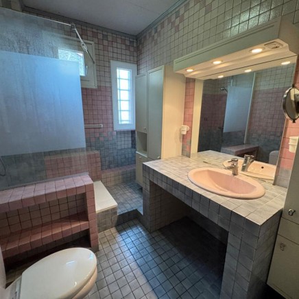 Elle offre de beaux volumes avec un grand salon lumineux équipé de la climatisation, parfait pour vos moments de détente en famille ou entre amis.