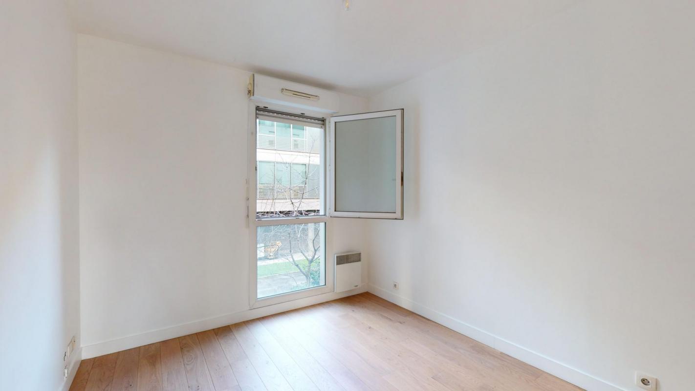 Le balcon-terrasse de 9 m² offre un espace de détente privilégié, avec une vue agréable sur le joli square des Acrobates.