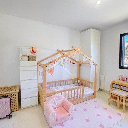 Côté nuit, deux chambres confortables profitent de vues dégagées et d'une belle clarté. Une salle d'eau moderne aux finitions soignées et une buanderie complètent l'ensemble, conçu pour un quotidien pratique et agréable. La climatisation réversible assure un confort optimal en toute saison.