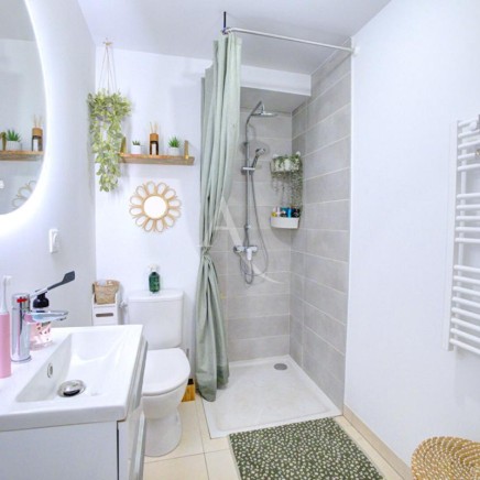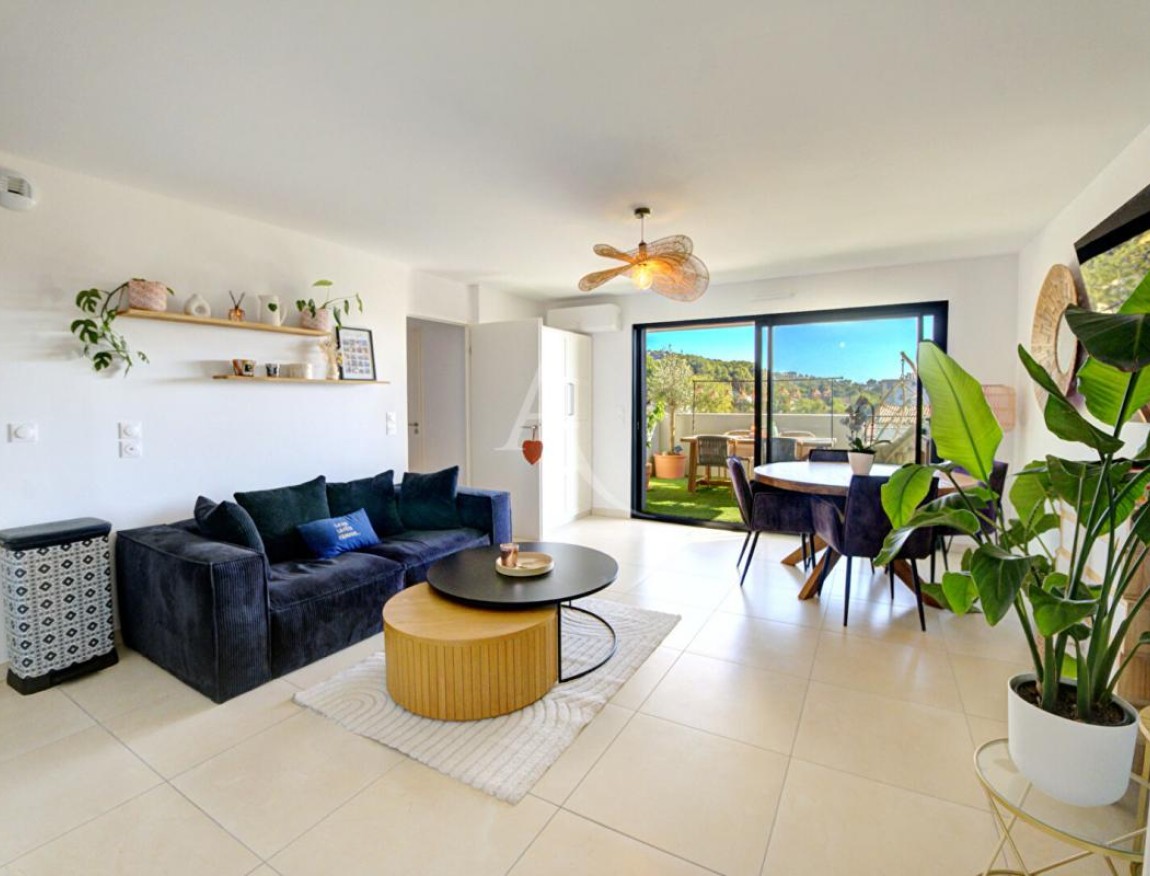 L'appartement séduit dès les premiers instants par sa lumière et son atmosphère apaisante. Orienté à l'est, il profite du soleil levant tout en restant à l'abri de la tramontane. La pièce de vie, spacieuse et contemporaine, s'organise autour d'une cuisine américaine élégamment aménagée et équipée. De larges baies vitrées ouvrent généreusement sur une terrasse sans vis-à-vis, où l'on savoure une vue verdoyante sur le mont Saint-Clair et un aperçu sur la mer. Le tout dans un calme rare, idéal pour des moments de détente.