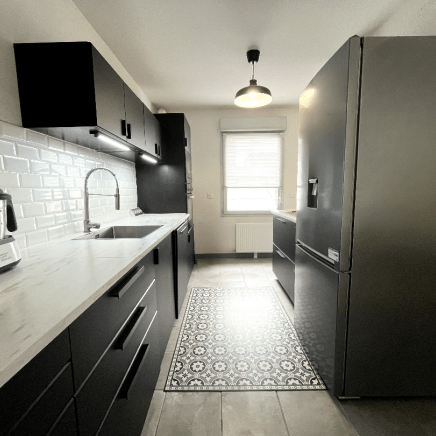 Elle se compose, au rez-de-chaussée, d'une entrée avec placards qui donne sur un grand salon lumineux avec sa belle cuisine ouverte fonctionnelle.