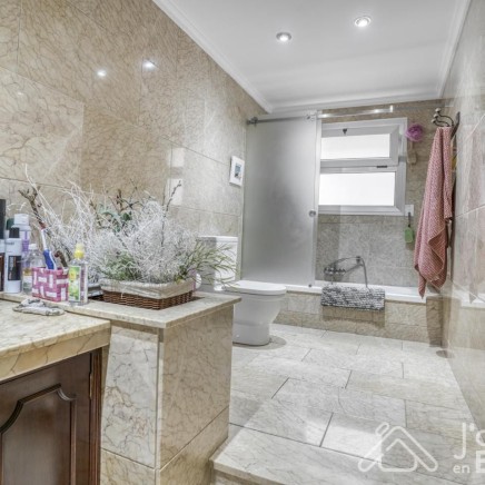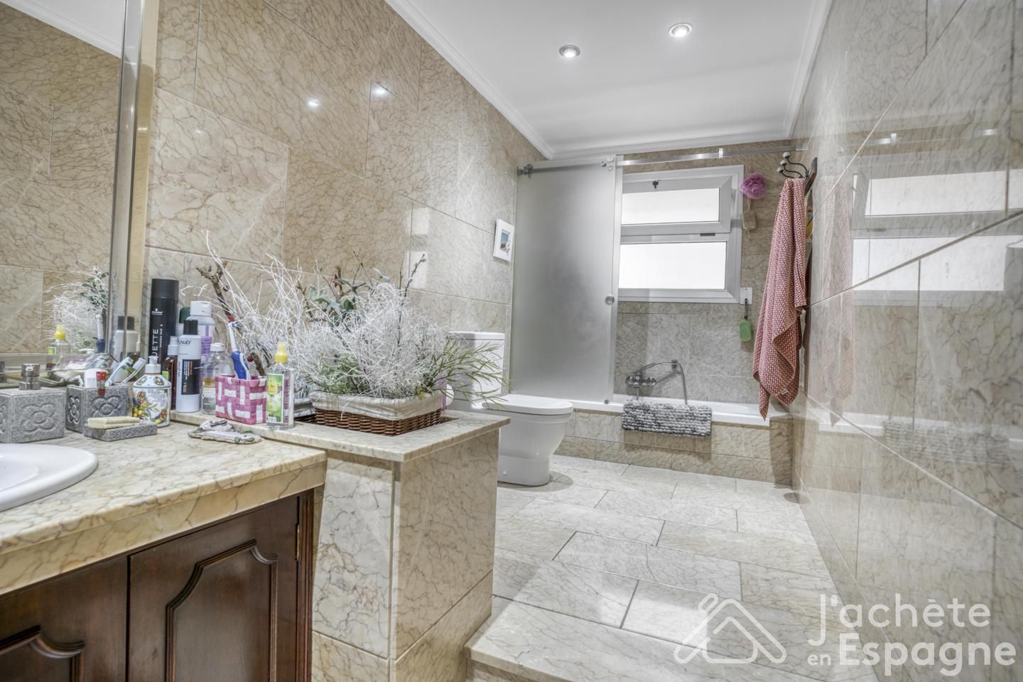 D'une surface habitable d'environ 300 m², ce bien offre cinq chambres spacieuses et trois salles de bains, ainsi que deux espaces salon-salle à manger : un élégant à l'entrée, idéal pour recevoir, et un autre, plus familial, près de la cuisine, idéal pour la vie quotidienne. La cuisine, entièrement rénovée et équipée en 2019, allie design contemporain et fonctionnalité ; les plans sont disponibles sur demande.