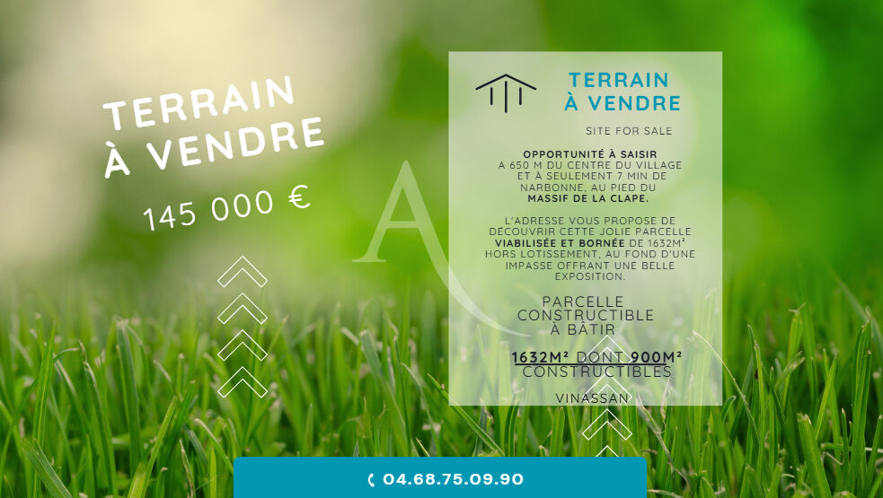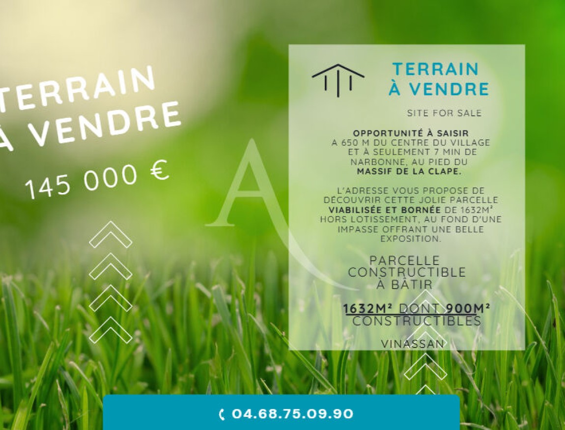 TERRAIN A BATIR (VINASSAN) - Opportunité à 650 m du centre du village et à seulement 7 min de Narbonne, au pied du Massif de la Clape.