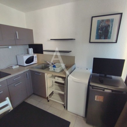 GRUISSAN - Quai de la Capitainerie, résidence LE MEDITERRANEE, à proximité du Port et des commerces, venez découvrir cet agréable studio meublé situé au 2ème étage sans ascenseur, comprenant entrée, rangements, WC, salle de douche, séjour avec coin cuisine et Balcon.