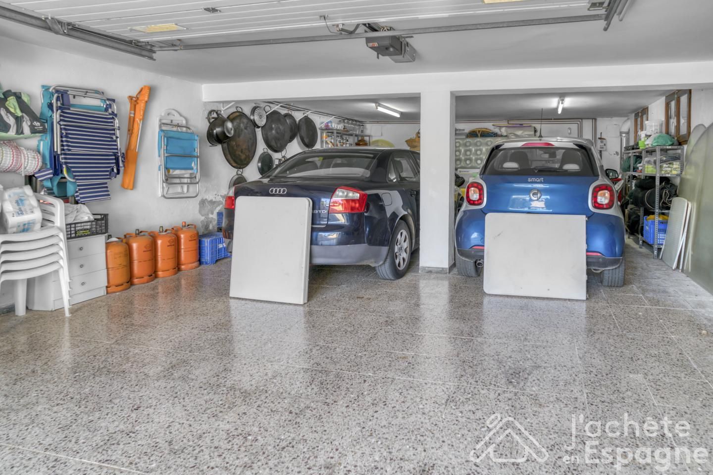 Garaje cubierto para varios vehículos y almacenamiento adicional.